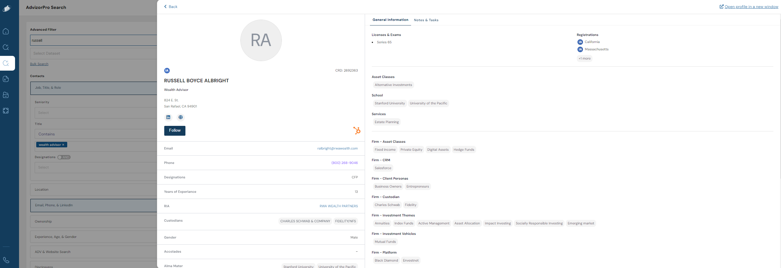 Recruiters, asset managers and fintech platforms can harness this information to identify the best independent advisor partners today and in the future.